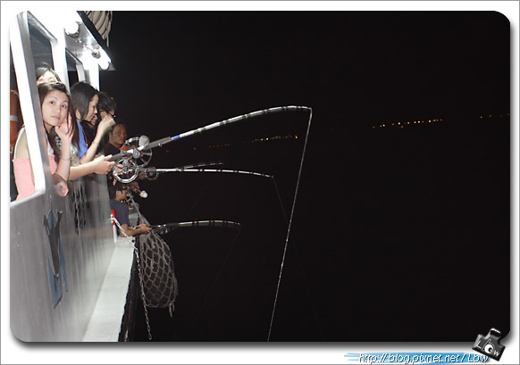 天色已暗,雖然還未到定點,但大家已經興奮地開始拿起釣竿了。
